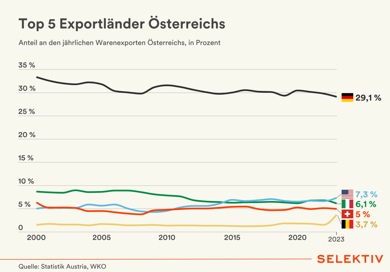 „Österreich ist ein Exportland.“ Dieses Bekenntnis steht klar und deutlich im Regierungsabkommen. In der Tat sind 30 Prozent der heimischen Wertschöpfung vom Export getrieben (nicht 50 Prozent oder gar mehr, wie oft behauptet wird, denn die Exporte enthalten hohe Anteile ausländischer Wertschöpfung).