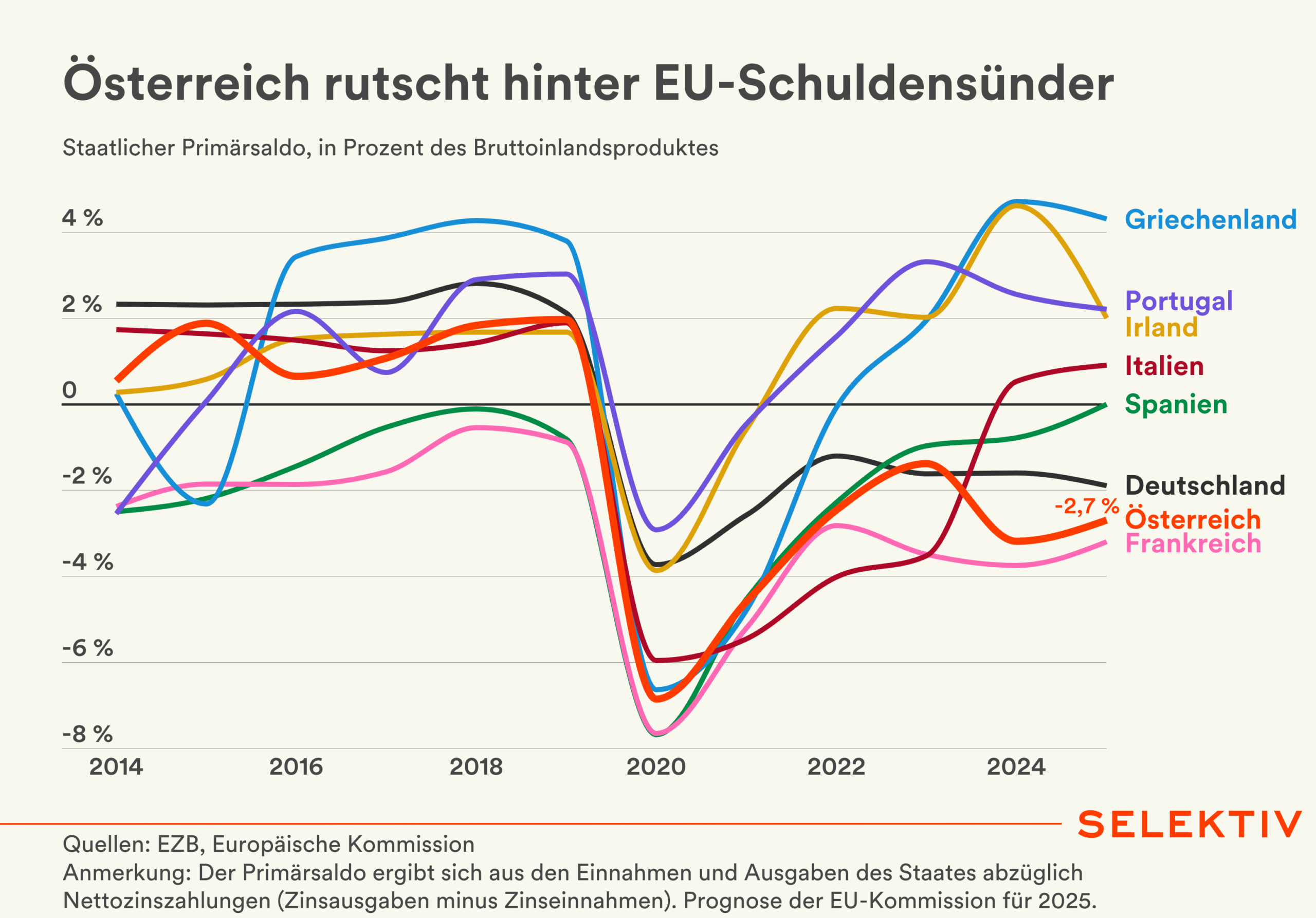Die Party des billigen Geldes bedeutet Staatsverschuldung ohne Ende und schwache Budgetdisziplin der Staaten. Die 10-jährigen Staatsanleihezinsen waren im Euroschnitt am Höchststand um etwa 1,8 Prozentpunkte niedriger als sie es ohne diese Ankäufe gewesen wären. Und selbst heute liegen sie weiterhin um rund 0,6 Prozentpunkte niedriger, als sie sollten. Das bedeutet, dass die Staaten im Euroschnitt noch immer nicht die Zinsen auf ihre Schulden zahlen, die sie ohne Eingreifen der EZB zahlen würden. Wenn ihre Staatsfinanzen also ausschließlich von privaten Investoren beurteilt werden würden, wäre weitere Verschuldung substantiell teurer. Umso unangenehmer ist die Frage, was mit Staaten mit bestehenden Budgetproblemen – wie Österreich oder Frankreich – passieren würde, wenn ihre Zinsen nicht weiter so stark gestützt werden würden.