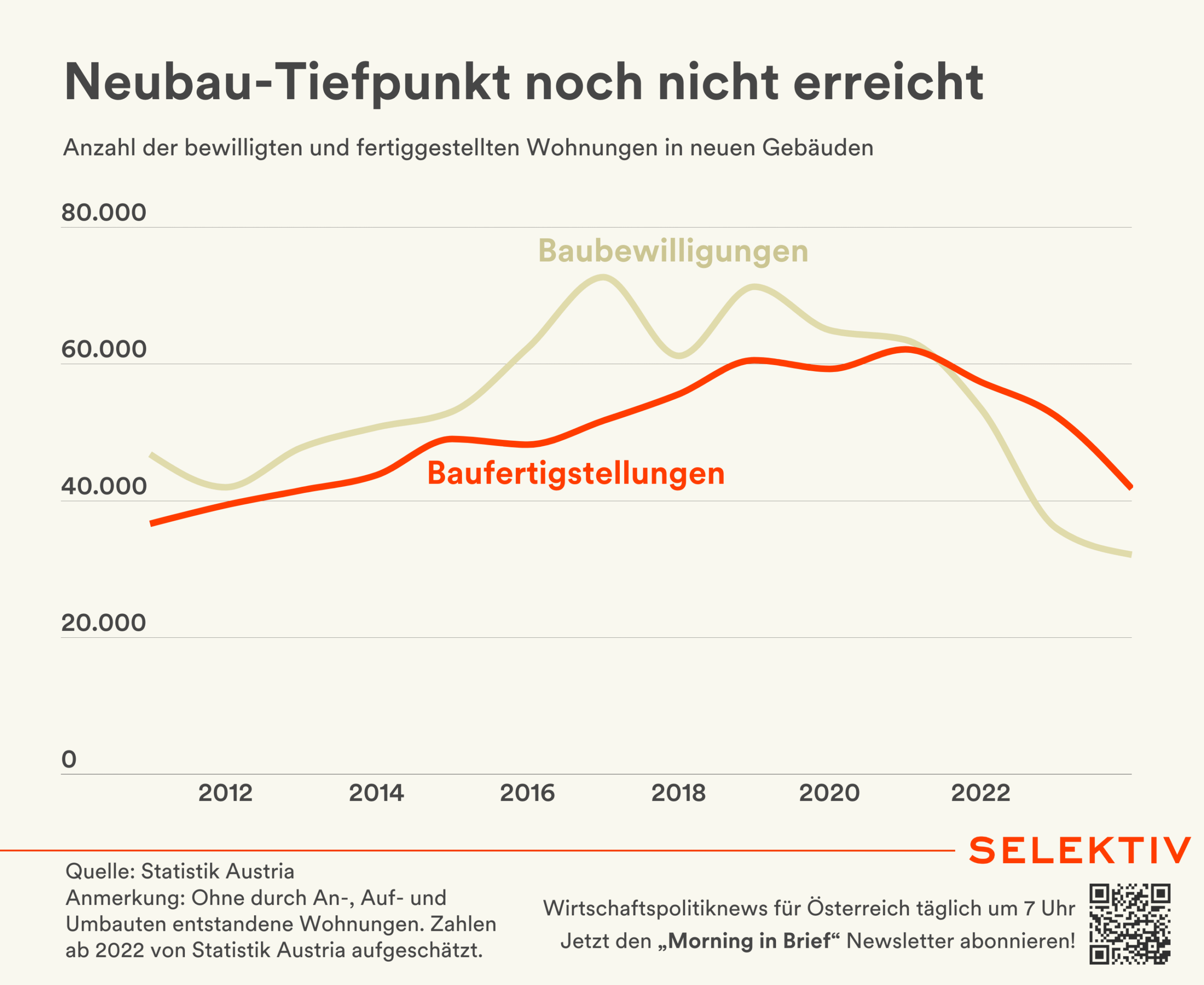 💡 Um ein Fünftel weniger Neubauwohnungen. Letztes Jahr wurden mit 41.762 Neubauwohnungen um 20,2 % weniger als noch im Jahr 2023 fertiggestellt. Die Fertigstellungen im Wohnbau folgen zeitversetzt dem Trend der Baubewilligungen. „Deshalb werden wir auch in den kommenden Jahren mit deutlich weniger Fertigstellungen im Wohnbau rechnen müssen“, so Manuela Lenk, fachstatistische Generaldirektorin von Statistik Austria. Pro 1.000 Einwohnern wurden österreichweit im Schnitt 5,9 Wohnungen fertiggestellt. Am höchsten war der Schnitt in Vorarlberg (8,7), am niedrigsten in Kärnten (4,3). [Quelle: Statistik Austria | Grafik von Christoph Hofer]