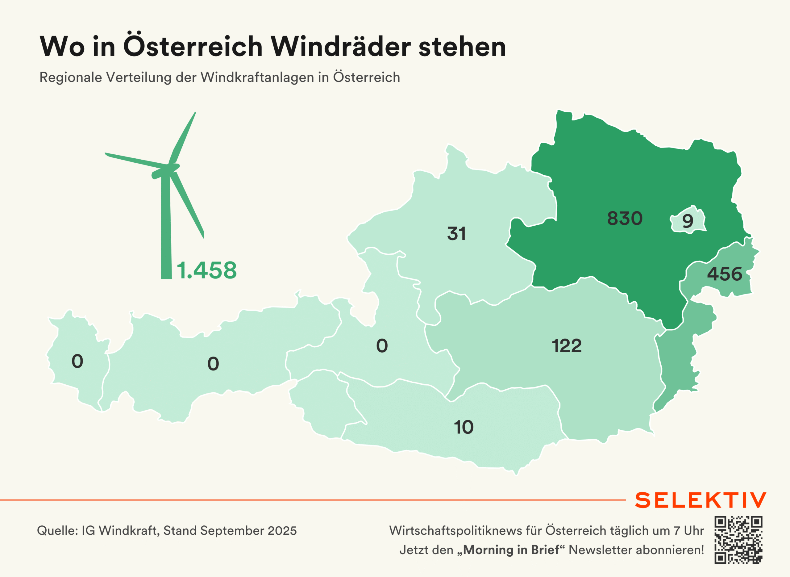 🇦🇹 Windkraftbranche aufgrund ElWG „schwer verunsichert“. Die Interessensgemeinschaft Windkraft sieht durch das Elektrizitätswirtschaftsgesetz „massive Rückschritte“ für die heimische erneuerbare Energieerzeugung. Neue Netzentgelte und eine Verdreifachung der Netzanschlusskosten würden eine Kilowattstunde um 10 % verteuern. Höhere Netznutzungsentgelte wären gar ein „Todesstoß für den regionalen Windkraftausbau“. All das würde laut IG Windkraft dazu führen, dass heimische Erzeugung teurer als der Import von Strom wird. „Strom werde dadurch sicher nicht günstiger“, so IG-Windkraft-Präsident Josef Plank. [Quelle: IG Windkraft | Grafik: Wo in Österreich Windräder stehen]
