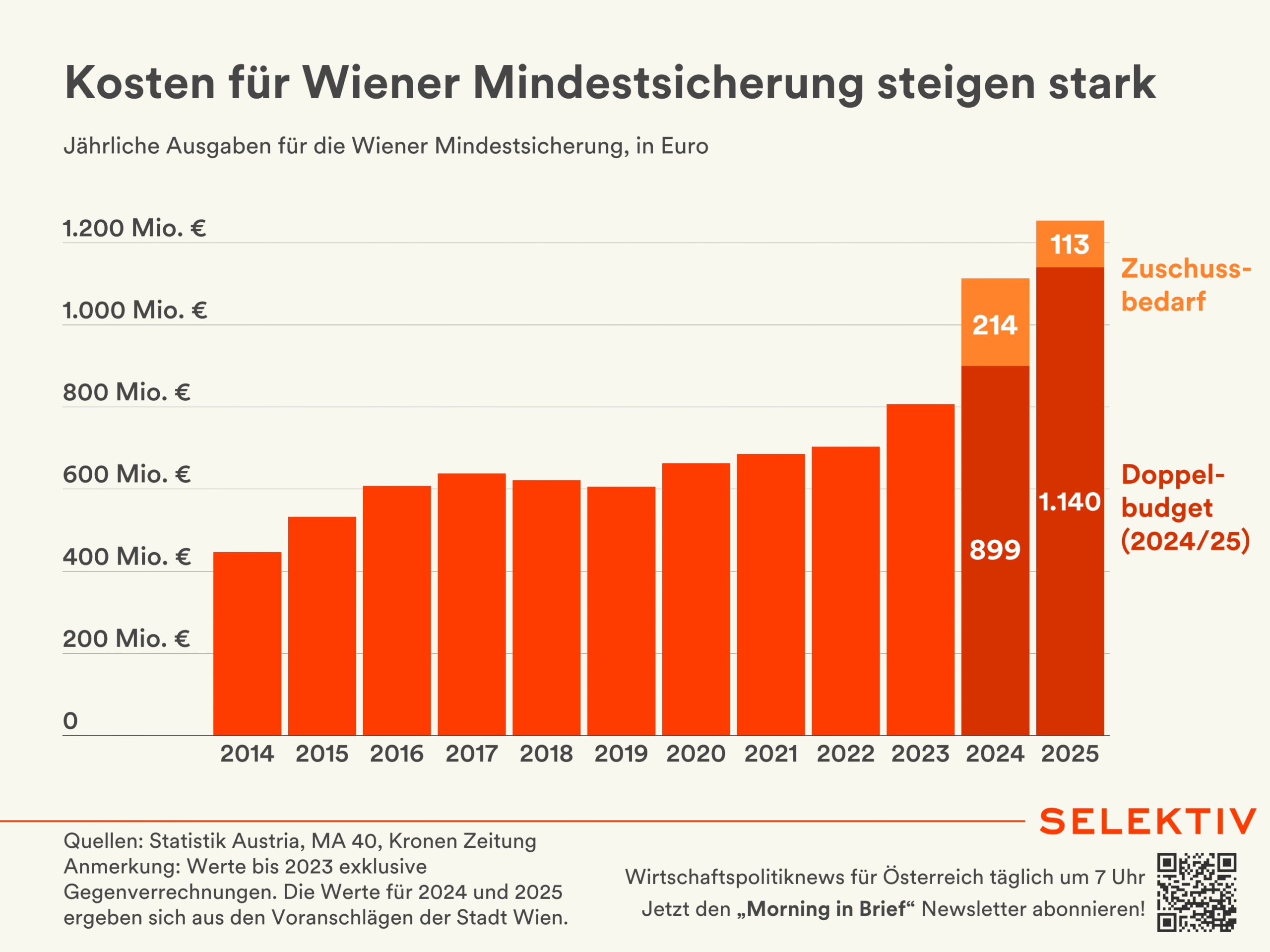 🇦🇹 Wien will Kindergarten-Pflicht für Mindestsicherungs-Empfänger. Um Eltern, die Mindestsicherung beziehen, die Arbeitsmarktintegration zu erleichtern, will der Wiener Bürgermeister Michael Ludwig, eine Kindergartenpflicht für deren Kinder ab 3 Jahren einführen. Dadurch könnten u. a. die Kindersätze in der Mindestsicherung sinken, da der Kindergartenbesuch als Sachleistung angerechnet werden würde. Die Mindestsicherung soll grundsätzlich reformiert werden – das betrifft auch die Anrechnung von Wohnkosten für Kinder und die Gleichstellung von Wohngemeinschaften mit Familien. Insgesamt sollen so 115 Mio. pro Jahr an Einsparungen möglich sein. [Quelle: Stadt Wien | Grafik: Kosten für Wiener Mindestsicherung steigen stark]