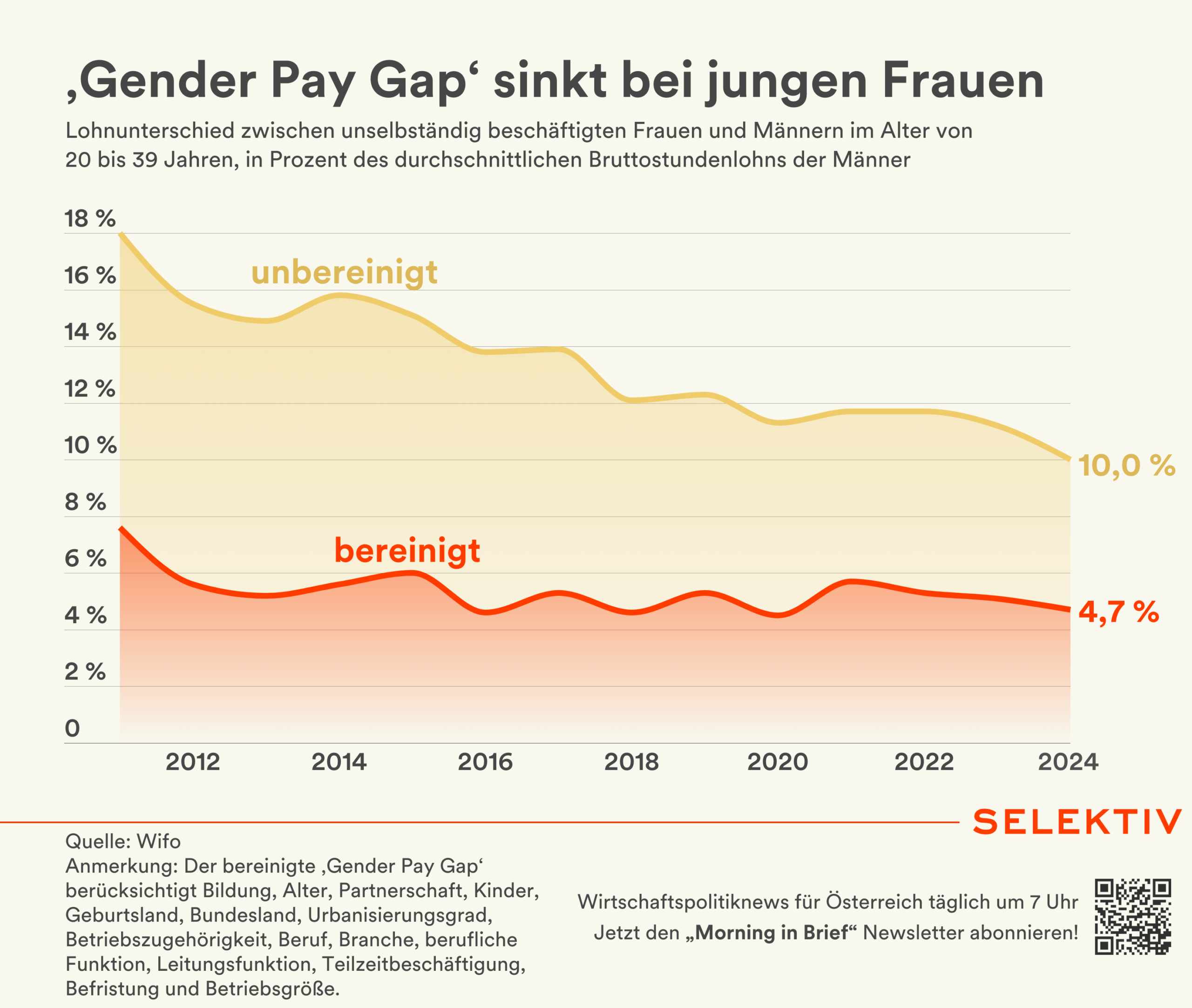 💡 ‚Gender Pay Gap‘ sinkt, mehr Frauen in Führungspositionen. Der Lohnunterschied zwischen unselbständig beschäftigten Männern und Frauen im Alter von 20 bis 39 Jahren fiel seit 2011 deutlich, wie eine aktuelle Wifo-Studie ergab. Betrug der unbereinigte Pay Gap 2011 noch 18,0 %, sank er bis 2024 auf 10,0 % – der um Arbeitszeit, Branche, Bildung und weitere Faktoren bereinigte Gehaltsunterschied fiel von 7,6 % (2011) auf 4,7 % (2024). Anlässlich des Weltfrauentags diesen Sonntag veröffentlichte der Informationsdienstleister CRIF Österreich eine Auswertung zum Frauenanteil in Führungspositionen. 2026 liegt dieser österreichweit bei 31,4 % – das ist ein leichter Anstieg im Vergleich zu den Vorjahren (2025: 30,8 %; 2024: 30,3 %). Hoch ist der Anteil unter Inhabern von Einzelunternehmen (44,7 %), niedrig in den Vorständen großer Unternehmen (12,3 %). [Quellen: Wifo, CRIF | Reaktionen: BMLUK, Unos, ÖGB]