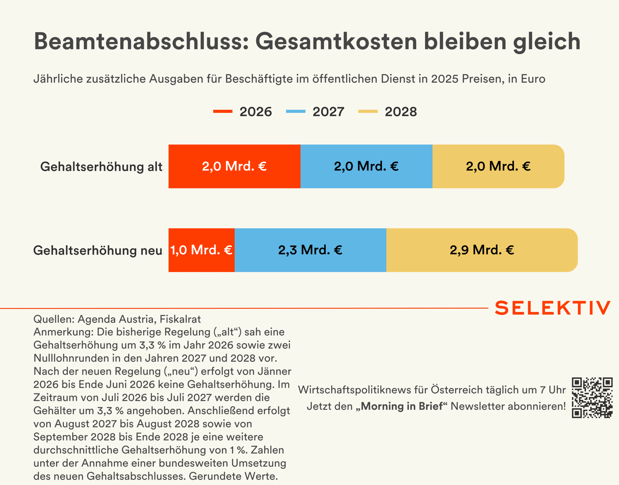 Mit dem neuen Beamtenabschluss sind die Kosten für die Gehaltserhöhungen laut Agenda Austria für die kommenden drei Jahre sogar etwas höher als bei dem ursprünglichen Abschluss mit darauffolgenden Nulllohnrunden. War das Aufschnüren eher ein symbolischer Akt?